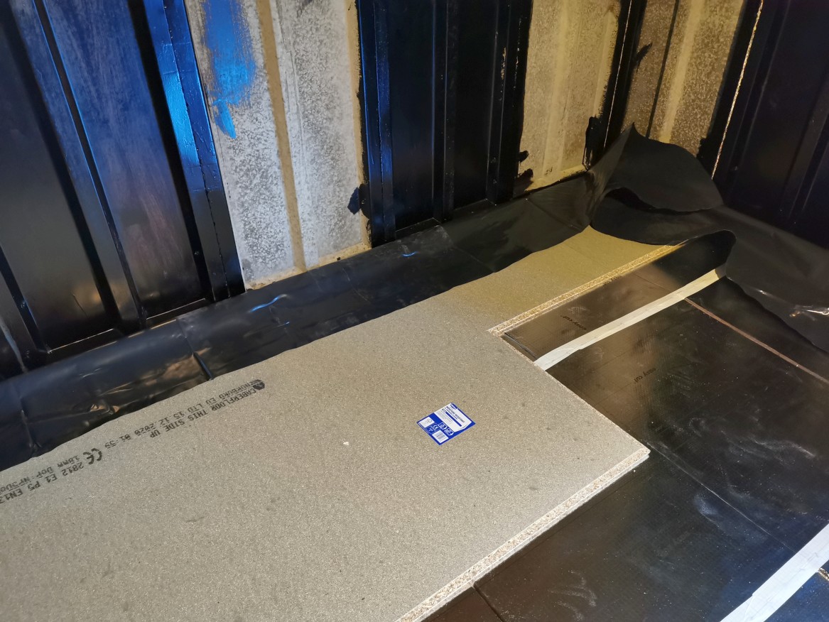 Now to tackle the floor. with this being a solid concrete base it’s a good idea to put down an damp proof membrane first. Then the floor insulation was placed down. I didn’t have a lots of space available for the floor insulation, so I used 5mm foil backed insulation sections that slot together. Finally on top of that we installed 18mm flooring sections. These are intended to installing in lofts and slot together very easily.