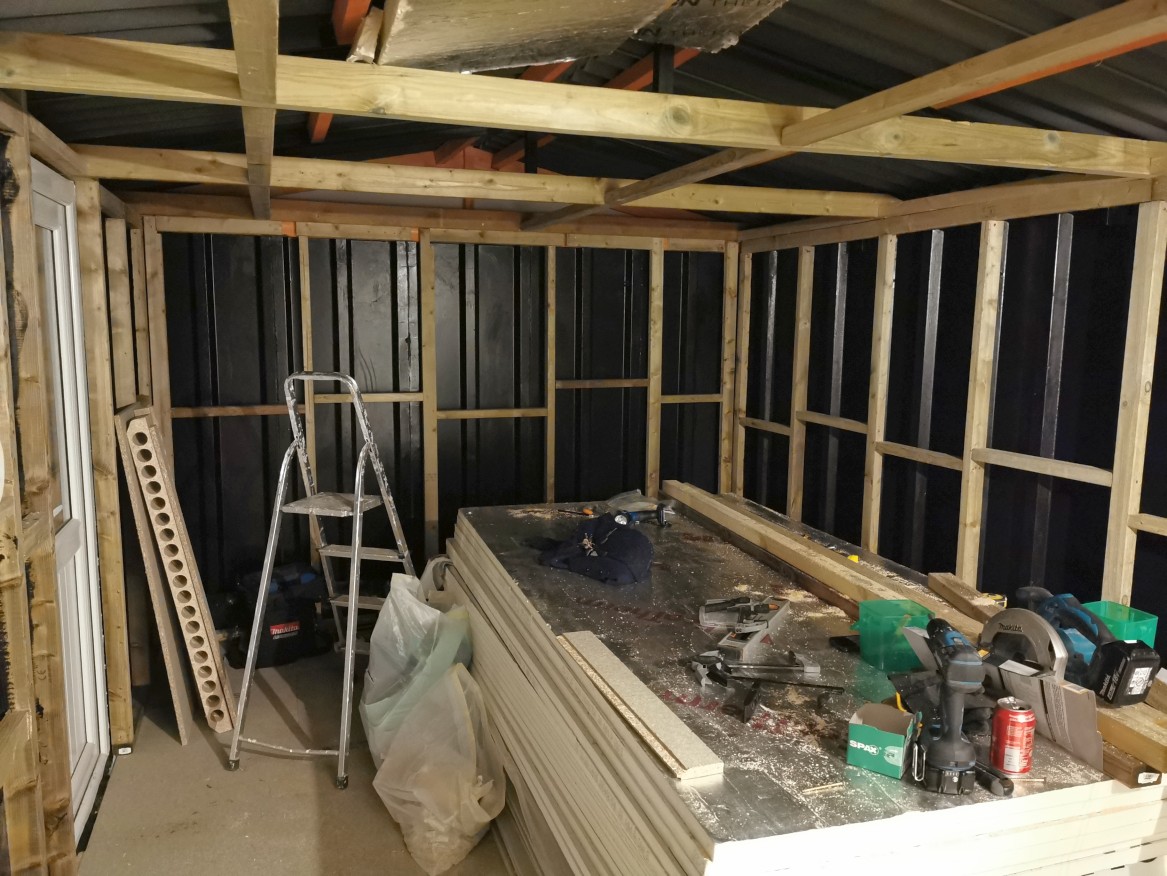 Well its been an exciting month so far. My long awaited workshop was built just before Christmas, and I could start working on the interior. As I’ve mentioned, I want to use this space as a workshop, office (work from home) and somewhere to put some video games and arcade machines. See my previous post for the concept renders.