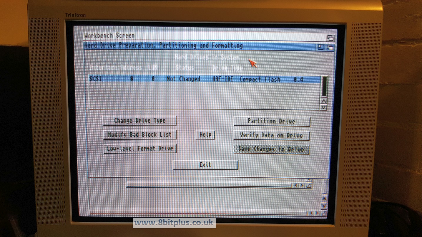 When I finished cleaning up the board, I connected a 4Gb CF hard drive and boot it up. Loaded Workbench first time.