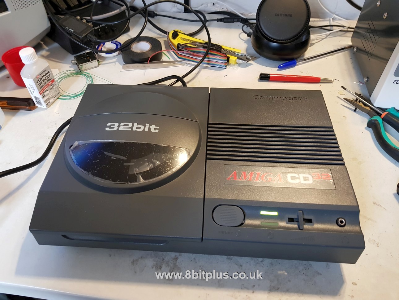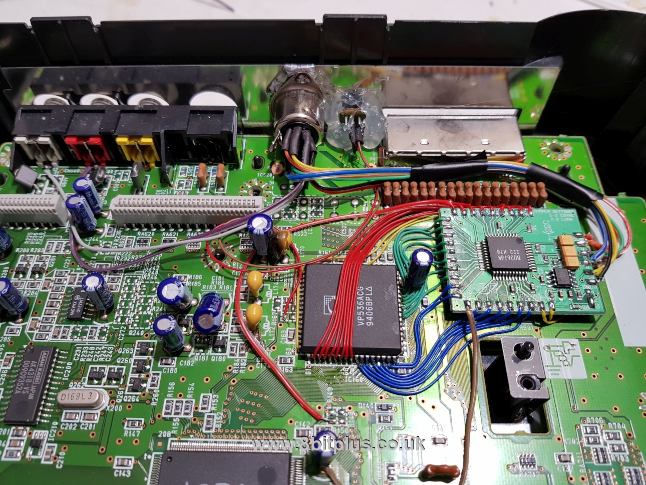 Next is an RGB mod in an Amiga CD32. I fully recapped the console too as all Amiga’s with surface mount caps will eventually have problems. The RGB mod is quite simple, it already has the same RGB video encoder as the A1200 and A600. The signal just needs tapping off to a suitable port. I removed the RF module and soldered on a 9-pin mini din (same port as a MegaDrive 2)