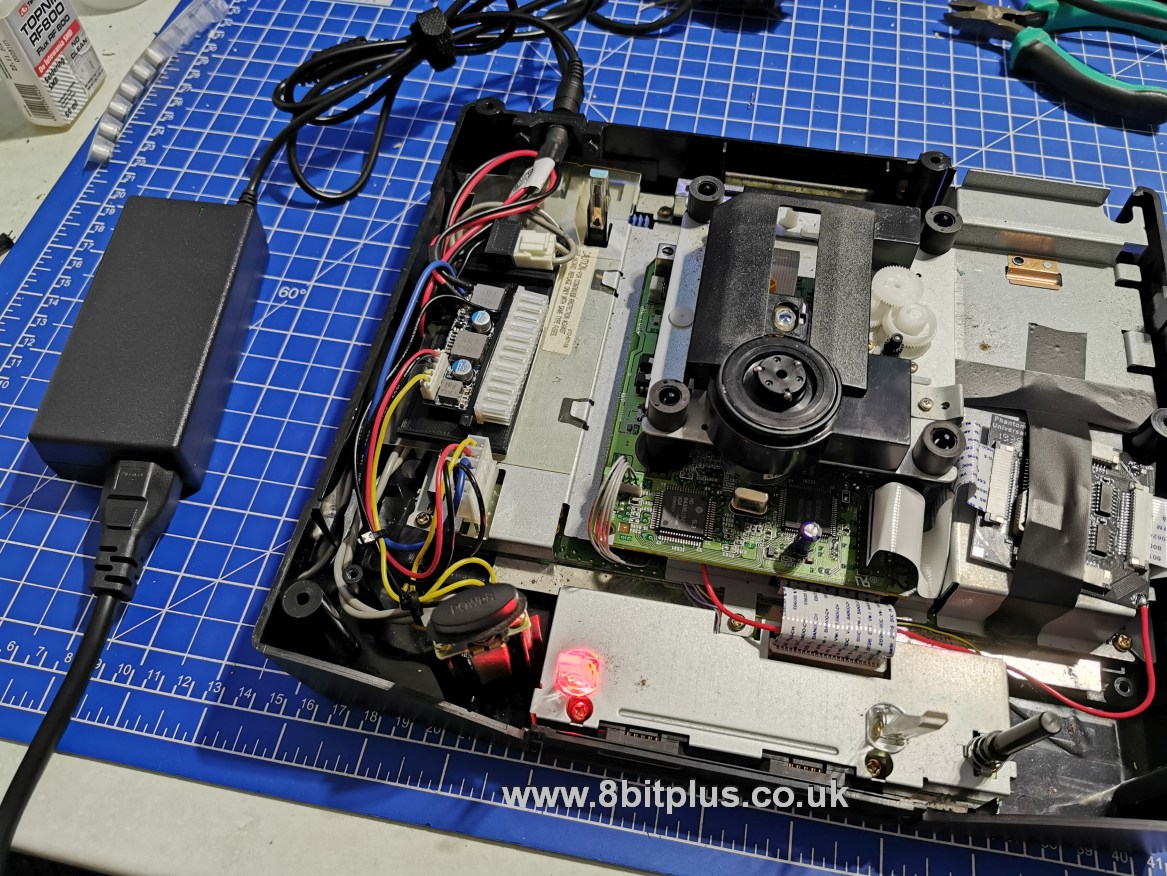 Firstly we have a very nice Sega Saturn with a full list of mods. Its got a Region Free Bios, FRAM save memory, Phantom chip, Switchless 50/60hz selector and a PICO 12v PSU. All worked out very well, but I had to adjust the CD-Rom pickup laser to read CDR’s more reliably.