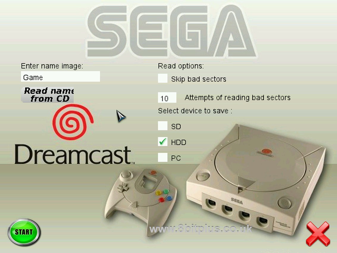 GD Ripper Reads the content of Original GD to the HDD or SD card as ISO format. It can also copy CDR games as CDI images.