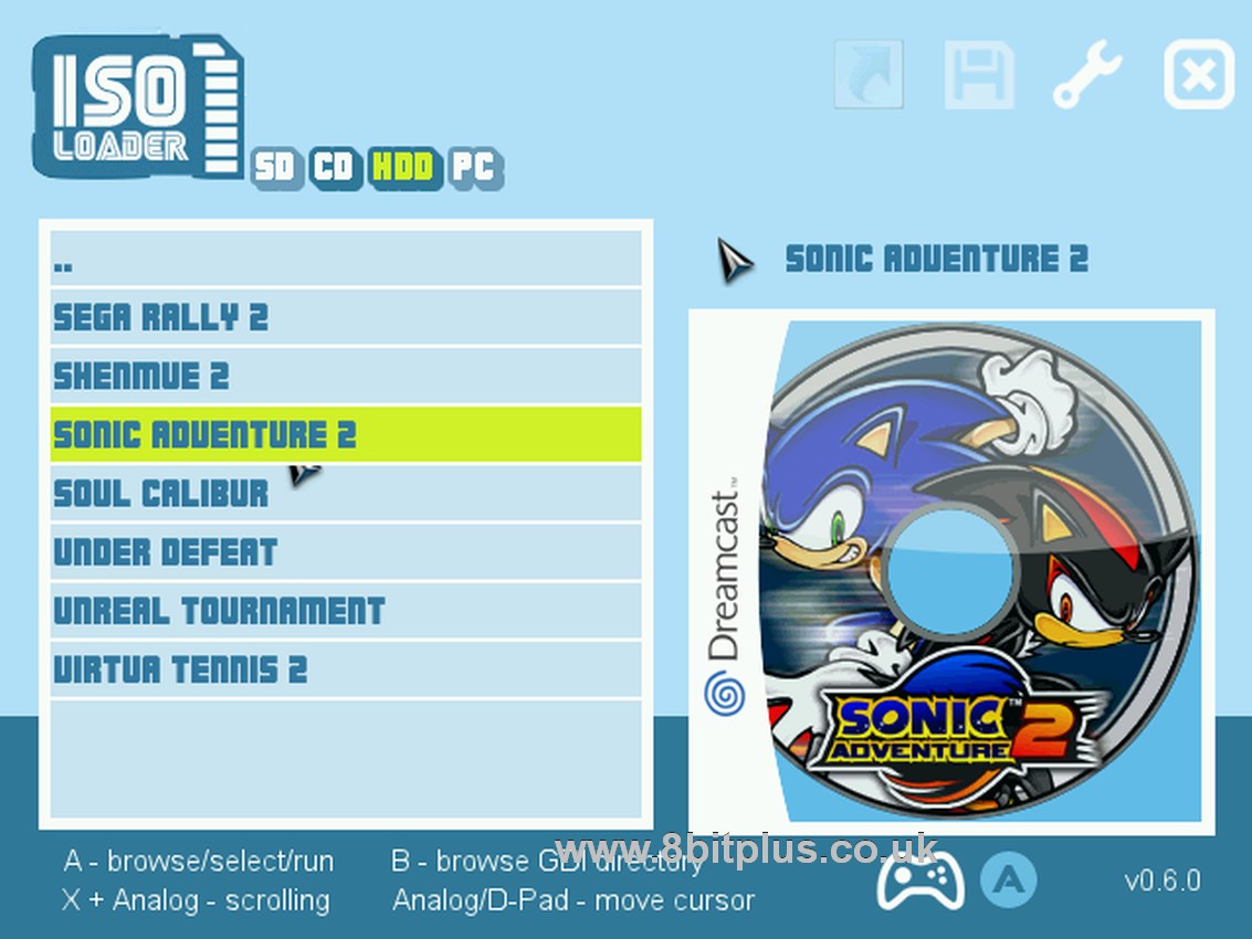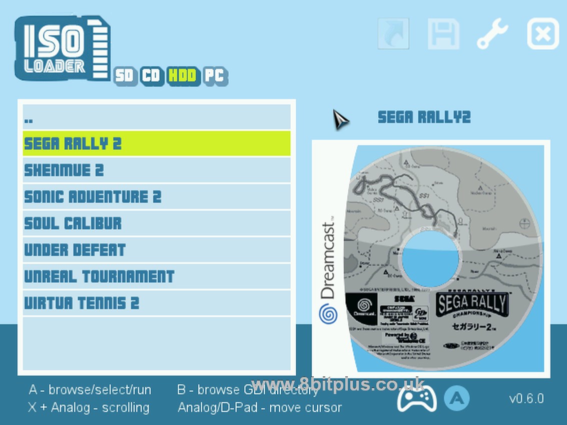 This is the main program to load game images. unlike other consoles than can (with modification) load games from a hard drive like the PS2 and Xbox, Dreamcast games are more complicated than just ISO images. The best format to get the games in is .GDI, and they need running through a optimisation script before uploading to the HDD.