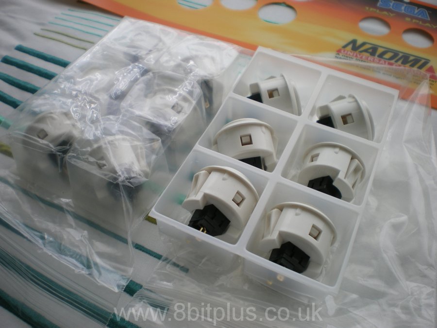 I also purchased a matching Naomi Universal overlay, a full set of white buttons, new micro switches and new joystick ball tops. The joysticks cleaned up very well and didn’t need replacing.