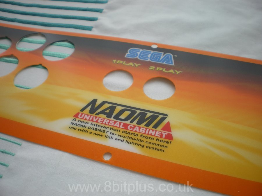The first real changes I made were to the control panel. My cabinet was setup for Virtua Tennis, and so only needed 2 buttons per player. The fighting games I wanted to play on the Naomi would need 6 per player. At first I thought I could drill out the extra holes, but I found it better to replace the panel with a new one from Giz10p.co.uk.