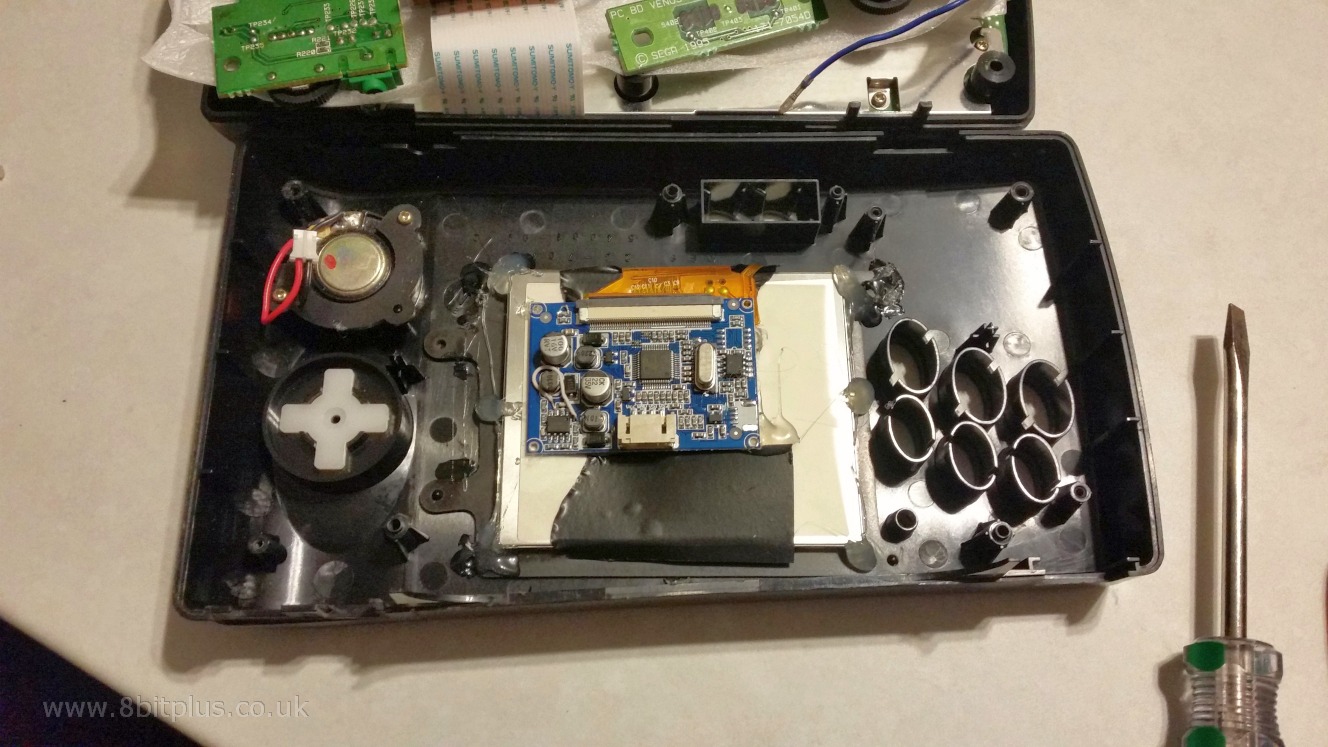 I found it’s best to attach the new LCD to the front case shell rather than to the motherboard as the old one was. Get it aligned up and glue in place. then glue the LCD driver board to the screen with a layer of plastic as an insulator from the PCB.