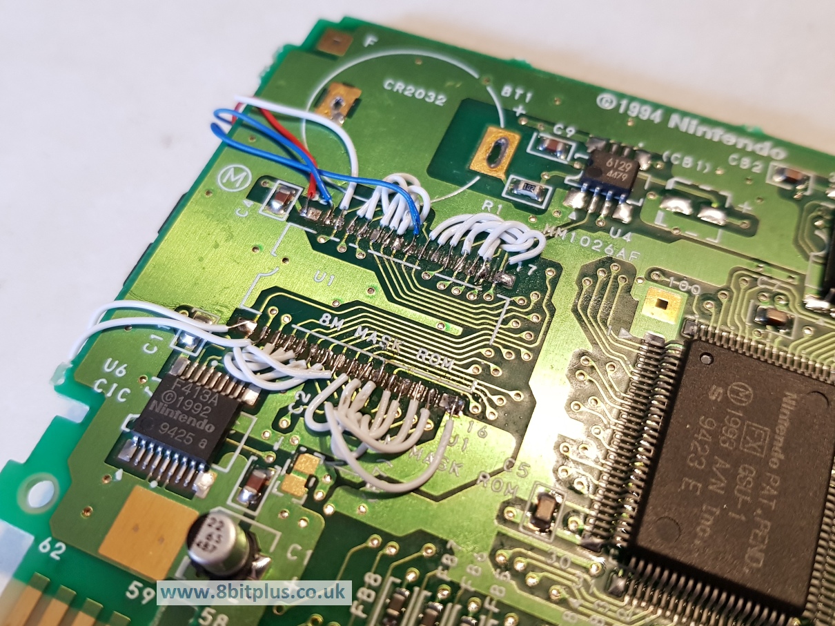 You might have already spotted that this chip is larger than the original ROM chip. It’ll need connecting with wires. You can locate the EPROM on either side of the board. I found it easier to install on the reverse. All of the wiring is straight pin-to-pin except for pins 31 and 24, which are swapped.
