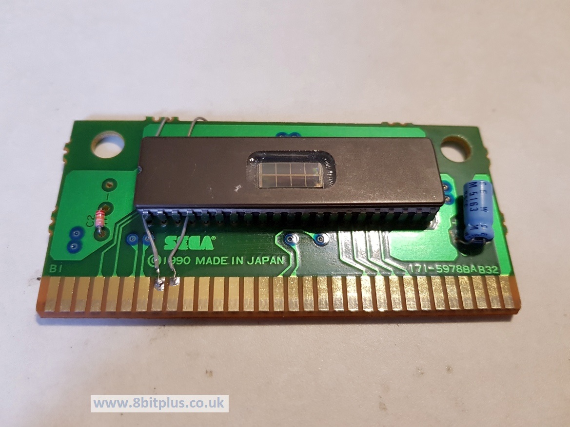 The EPROM is soldered in place, but you must make a few quick changes to PCB to allow the Mega Drive/Genesis to be aware of the larger address space of this bigger ROM.
