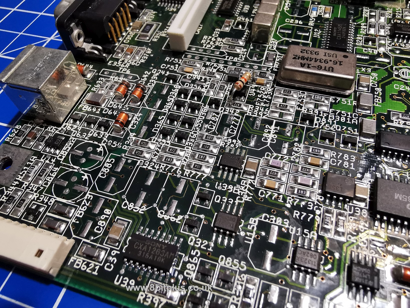 You might have spotted that this is not a Motorola made CPU. It is in fact one made by Freescale. These CPUs are much newer and often run cooler than the old Motorolla chips and are 100% compatible. This CPU is socketed and can be replaced with the full MC68030 adding a MMU to the CD32. There is no provision to add an external FPU, although the FPU is very little use on most systems and not required unless doing 3D rendering. If you want to see an FPU being used take a look here.