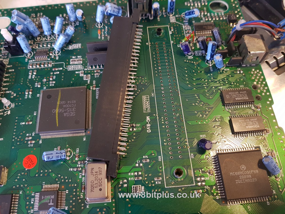 Removing and replacing the original cartridge connector in the Sega Mega Drive 2 console.